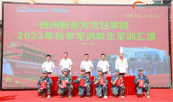 正值八月,骄阳当头。为磨炼学子意志,培养他们团结拼搏、勇于进取的奋斗精神,让学生更好地适应职校学习生活。杭州新东方职业学校对2022级秋季新生进行了为期10天的军事训练,并于8月25日上午九点在学校操场举行了军训汇报表演。学校各级领导、新生班主任、2022级受训新生参加了此次军训汇演暨表彰大会。