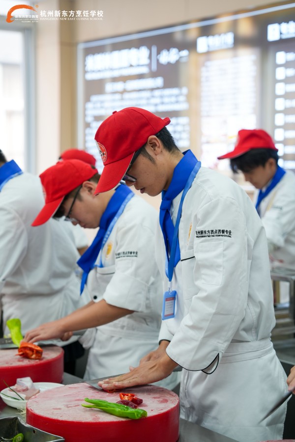 在杭州新东方烹饪学校的实训教室里,总能看到一个专注的身影,他手持菜刀,按照标准的姿势反复练习切配,眼神里满是认真与执着。